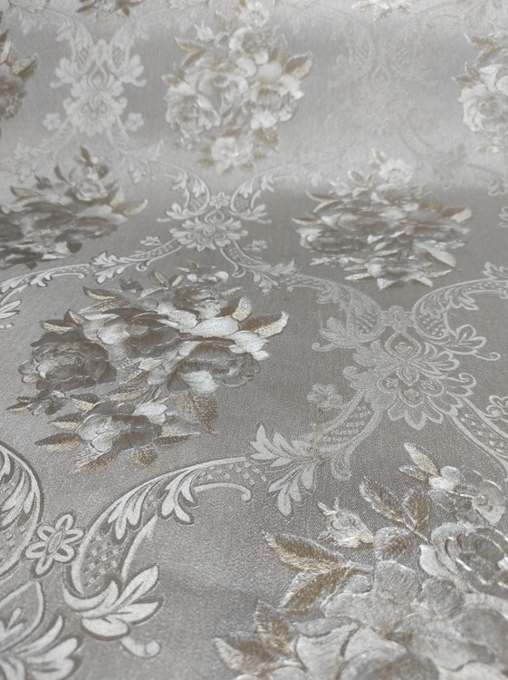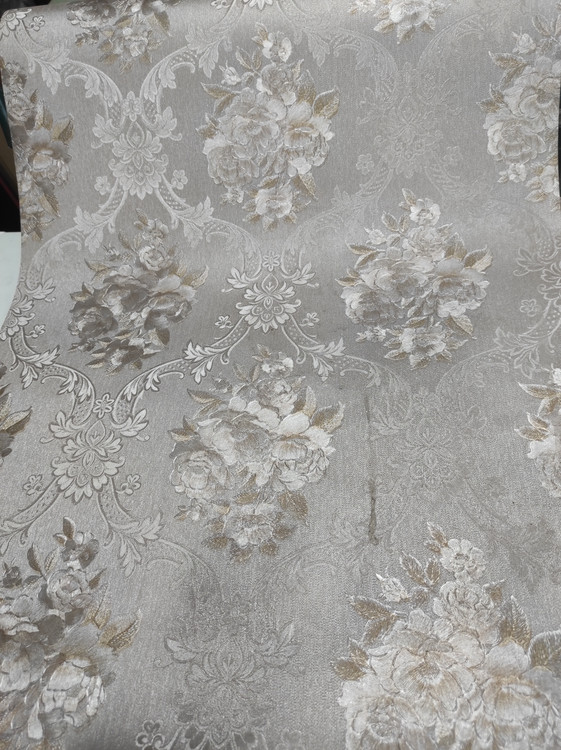 طرح گل تقریبا طلایی و زمینه ی طوس نقرهای و برجسته
